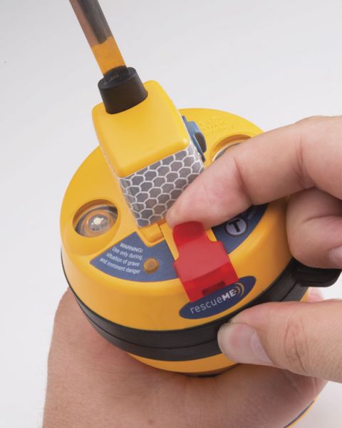 The rescueME EPIRB1 provides peace of mind with an impressive 10 year battery life. The world's most compact EPIRB can always be on hand, as its small size allows it to be easily retained within its manual bracket or placed in an emergency grab-bag or life raft. A simple protective tab over the operating keys prevents inadvertent activation, yet allows for easy operation when required. The rescueME EPIRB1 also features two high brightness strobes to maximise visibility in low light conditions.